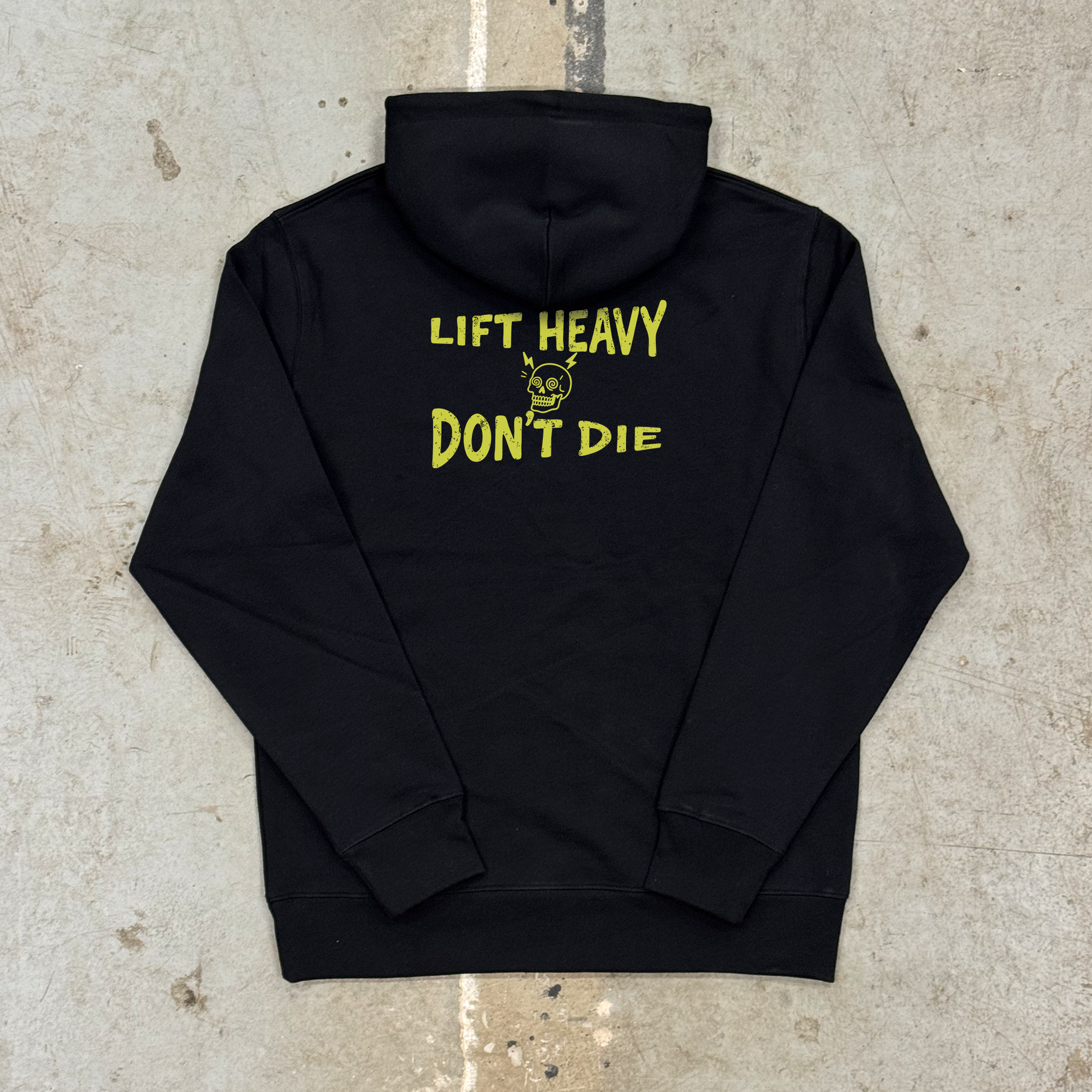 'LIFT HEAVY DON'T DIE' WARM UP HOOD - BLACK
